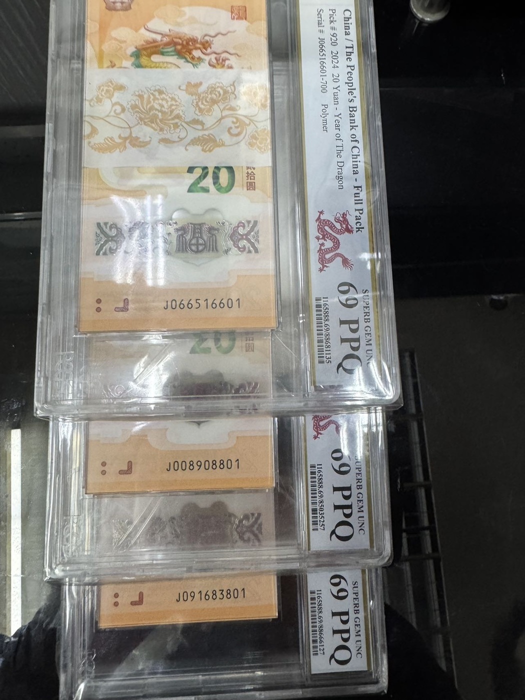 评级龙钞整刀百联pcgs69 J091683801 无47号801 价格 7.3万元