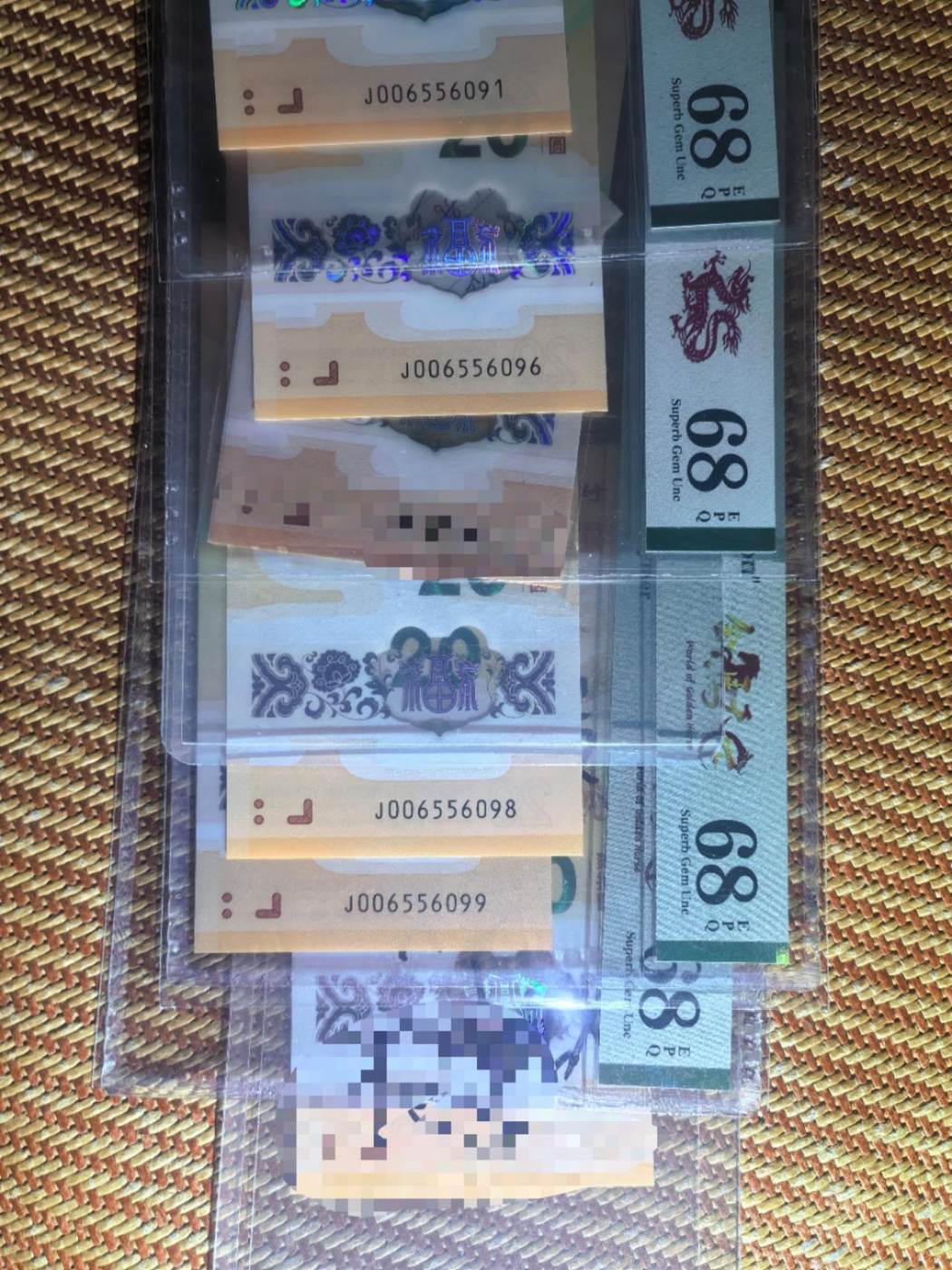 4/091/096/098/099四张PMG68分6300元