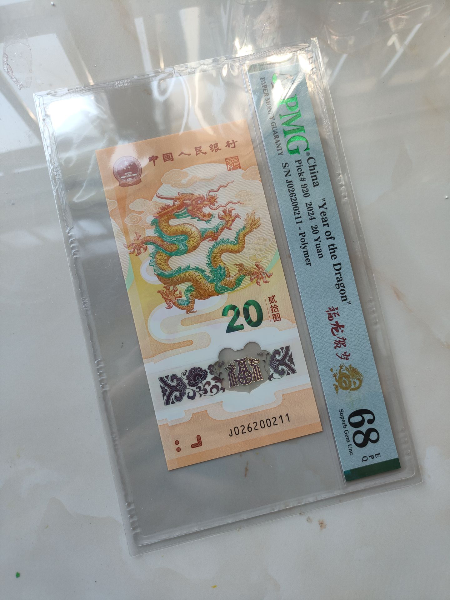 小龙钞0126龙四PMG68E尾211。售1400元三包。