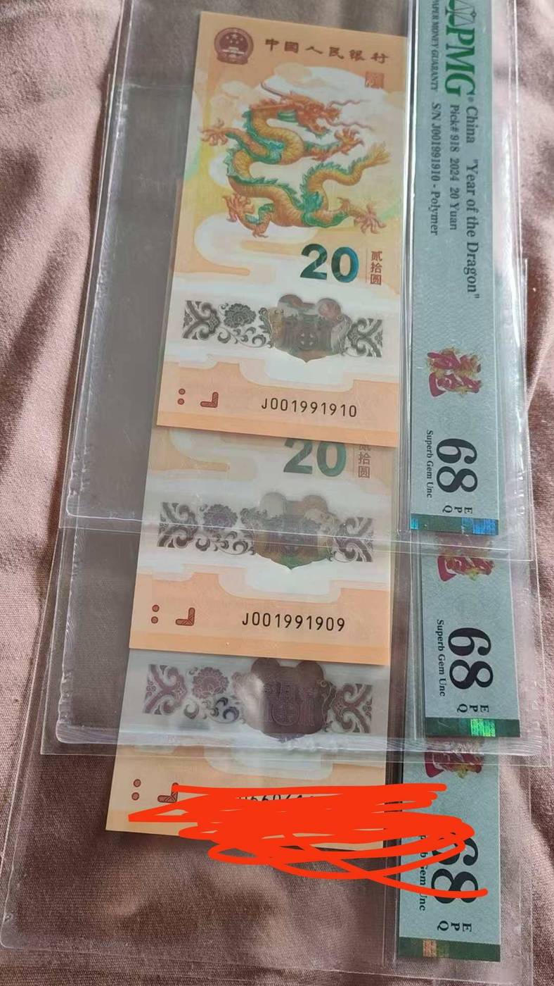 → 出龙钞019组合龙三pmg68分生日号8200一张