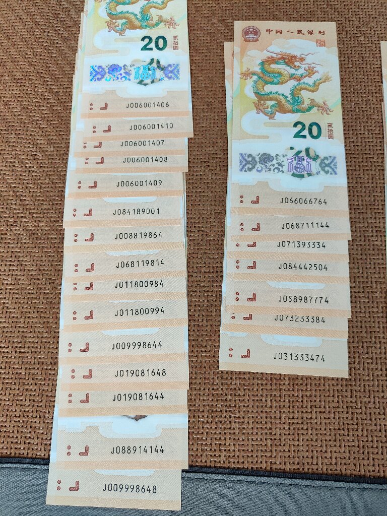 出小龙钞散张邮28张,里面有倒置加4,有圆圆加4,有豹子身,有尾顺子,985,爱情号。。82一张。另有9张有点指甲印,轻微瑕疵。78一张。。通走不单出包顺丰。。