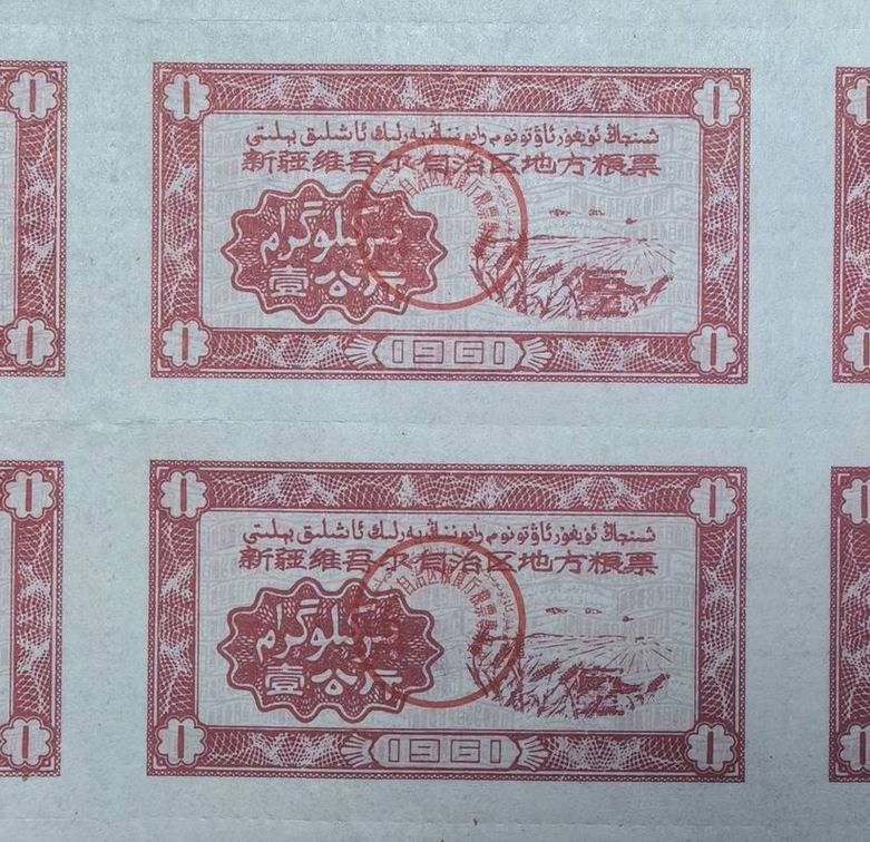 新疆1961年粮票1公斤,汉文和维吾尔文印刷。
