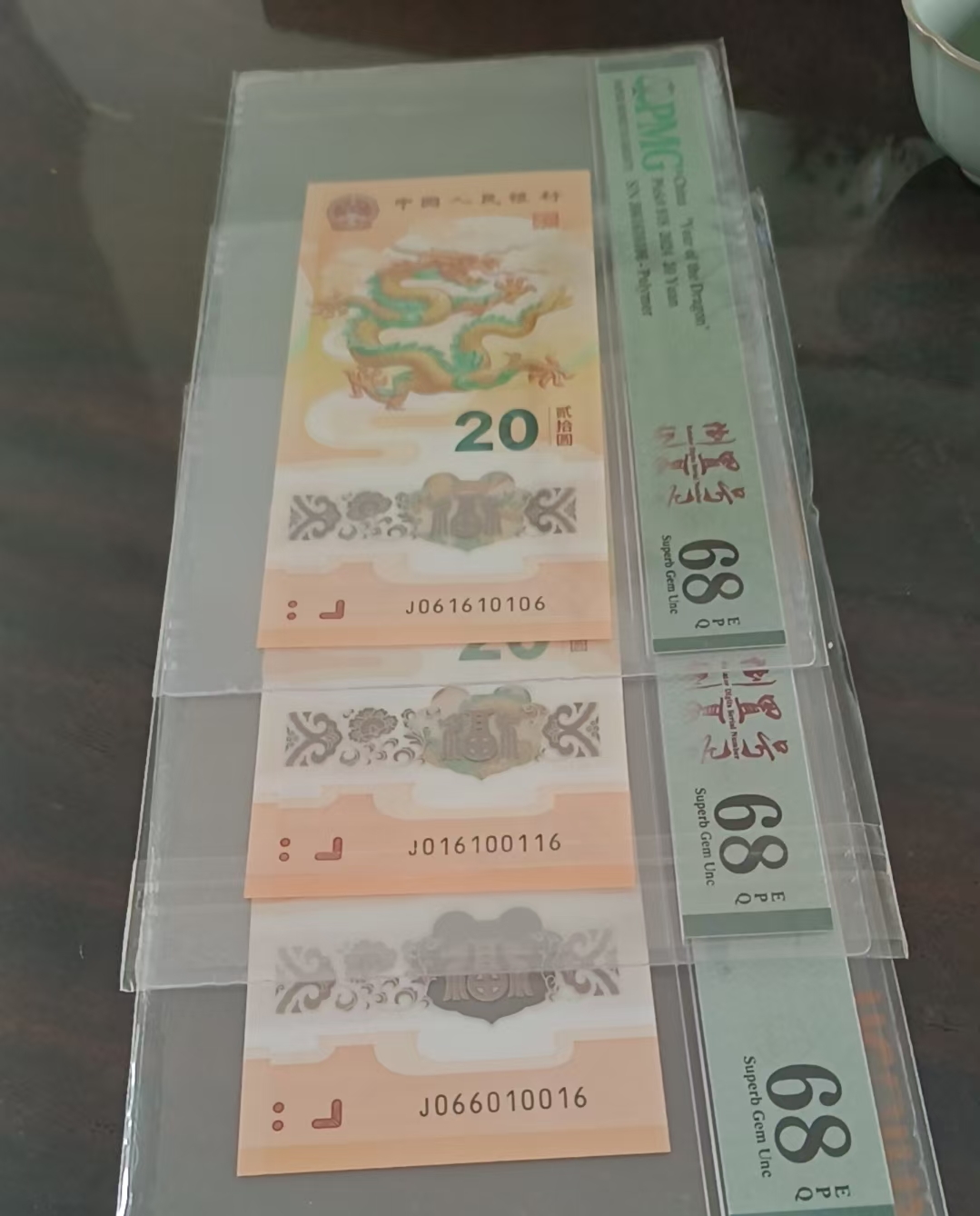出三张龙钞 016 组合尾 6,两张生日尾,pmg68 分