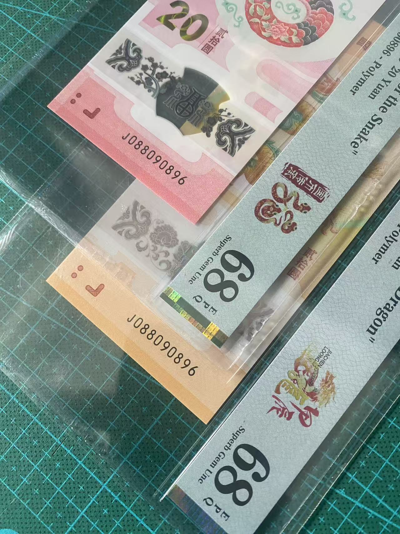 J088090896一对,圆圆,龙钞(PMG68),蛇钞(PMG68),088头中国梦,全同一对6000