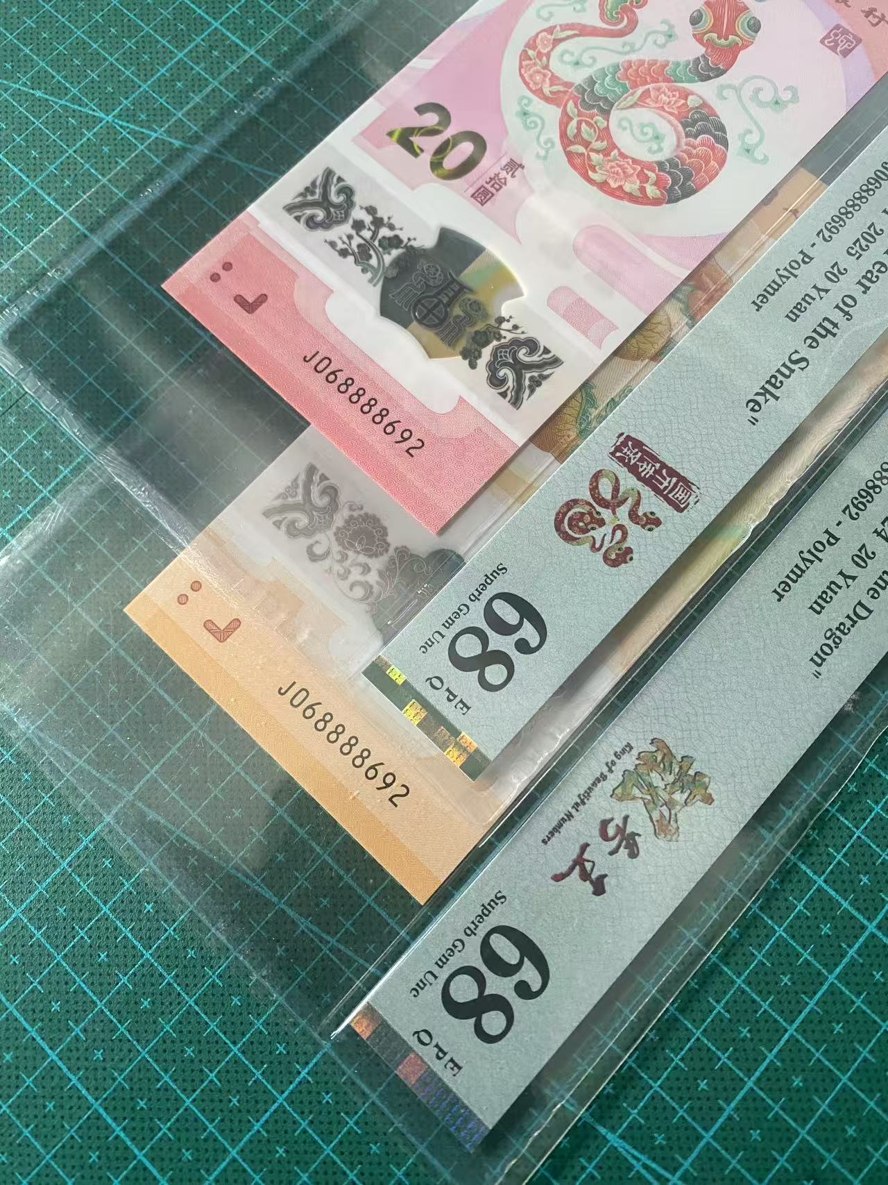 J068888692一对,龙珠王满号,龙钞(PMG68),蛇钞(PMG68),8888狮子身,全同一对5000