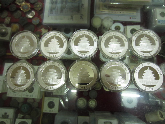 一共11只,年份见纸条,1盎司的8只,30克的3只,总重338.8克,380*11只包顺丰,基本就是料价。盒子有磨损,币完好。