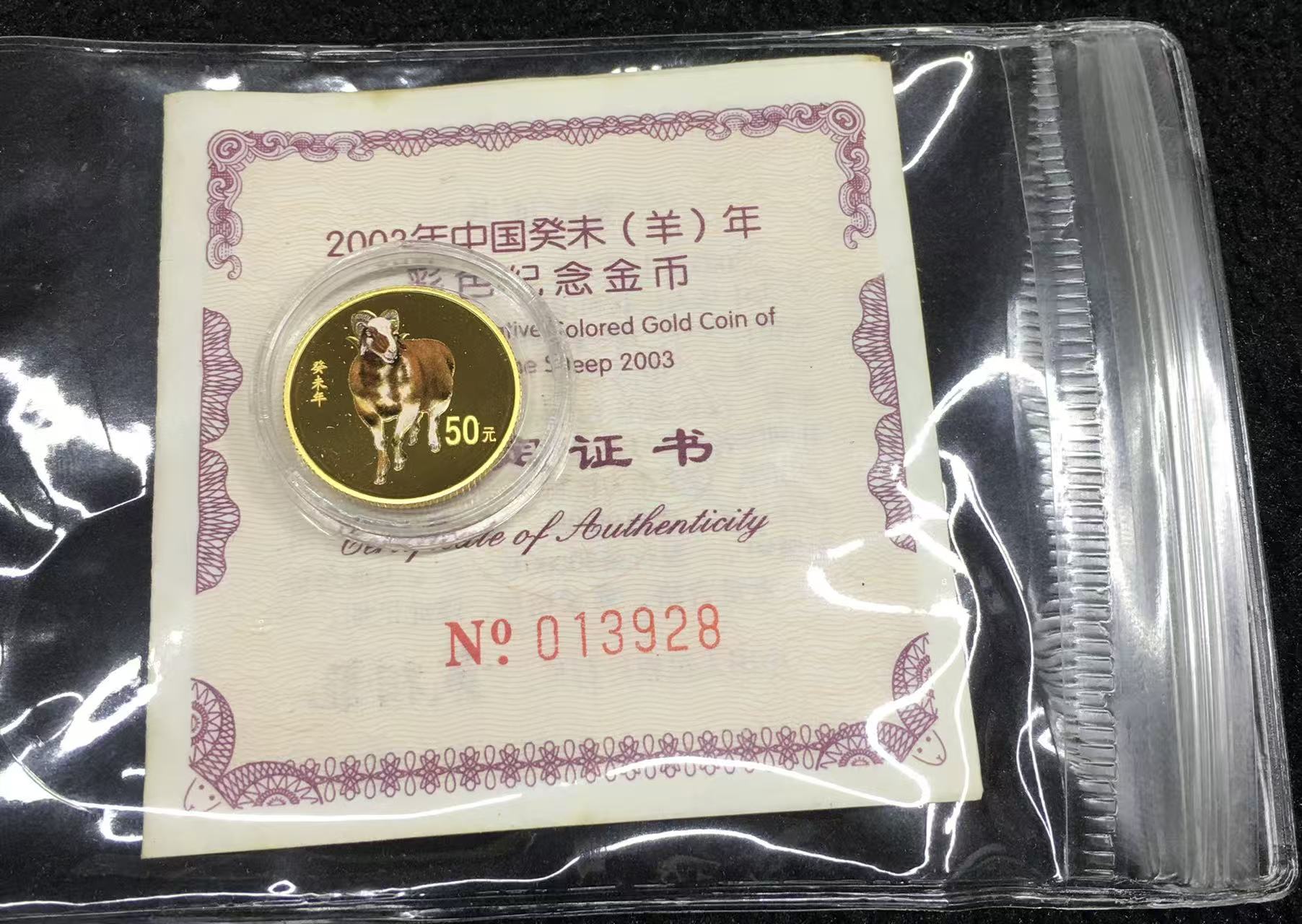 2003年1/10彩金羊一个,有证书没盒,精致领头羊
