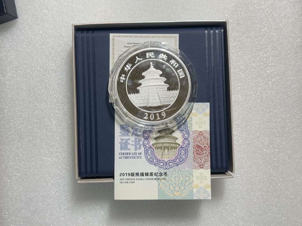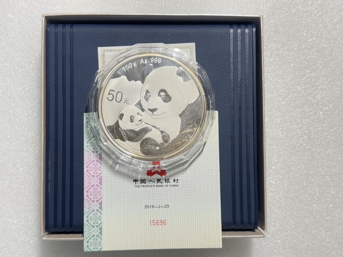 → 售原盒原证2019年150克熊猫银币