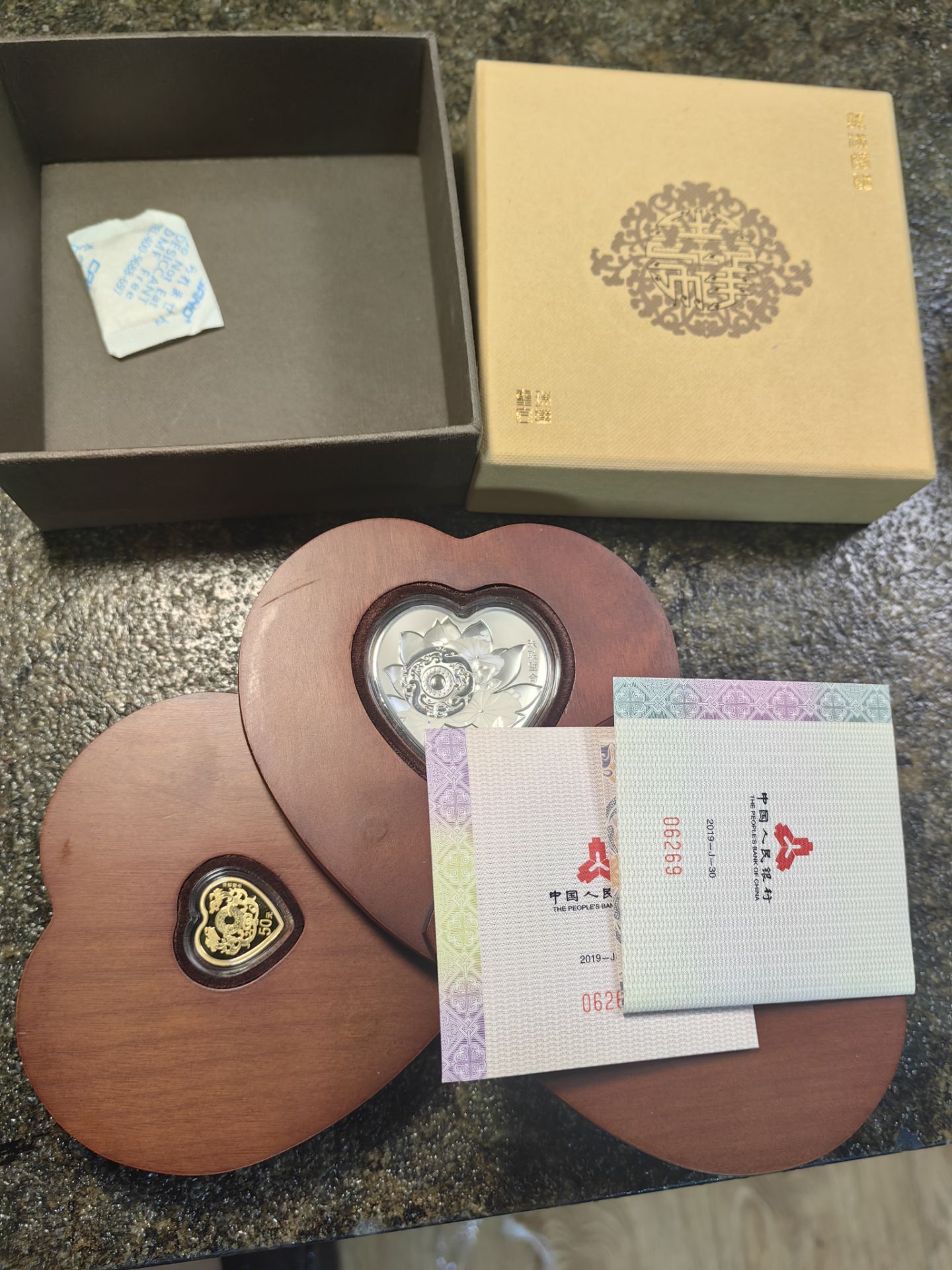 → 出售19年吉祥文化心型珠联璧合金银 3克金30克银