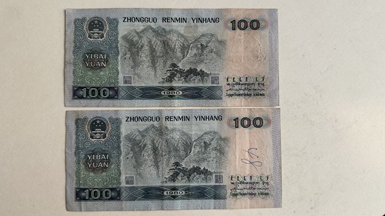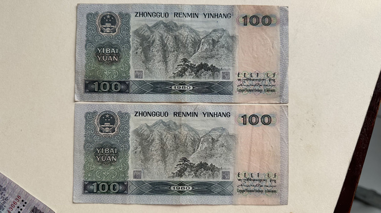 出原票好品4张80100、如图所示、一张蓝字、一张黑字、一张有裂口、一张无字无裂、对光无折一起998元包邮