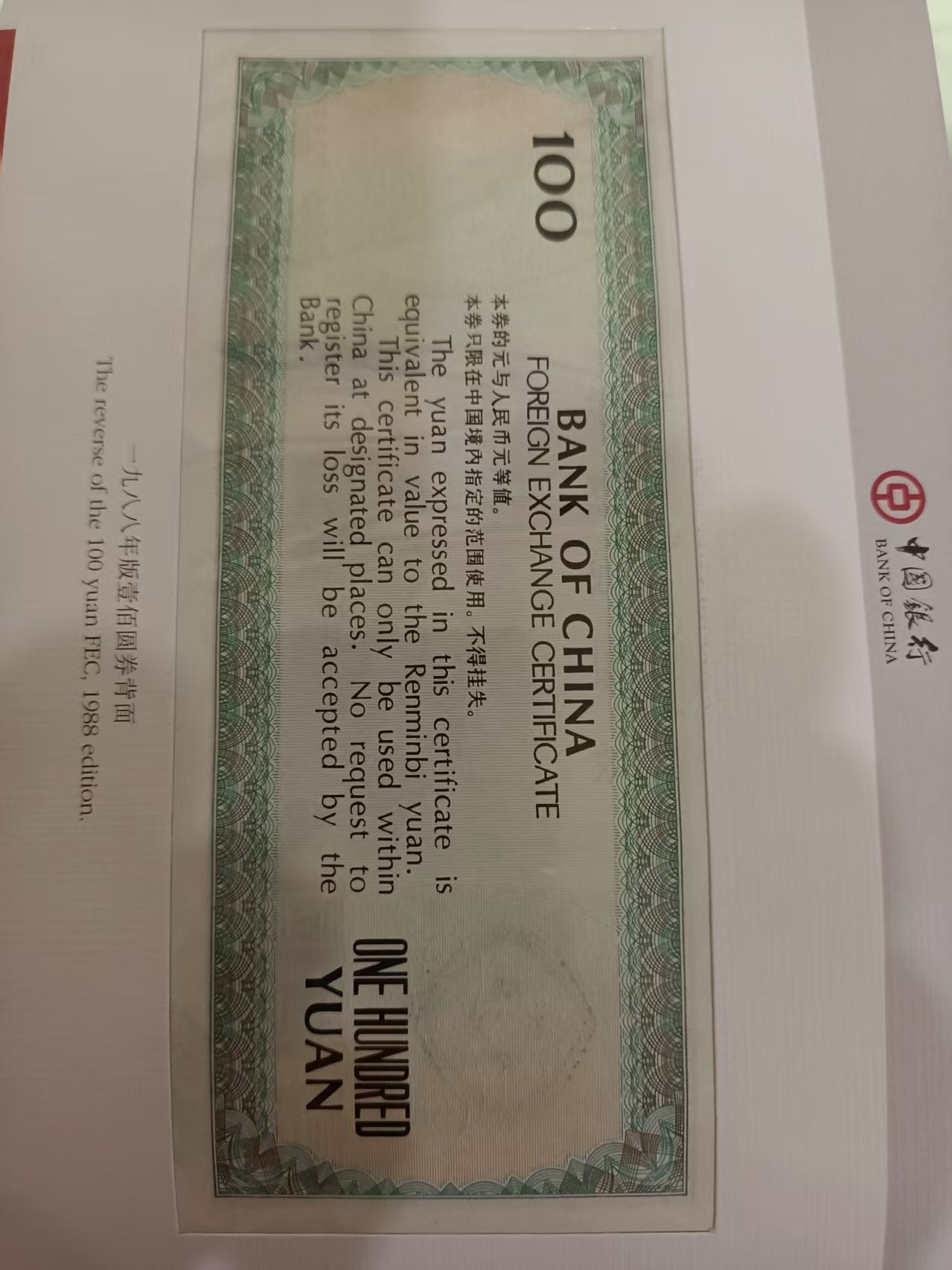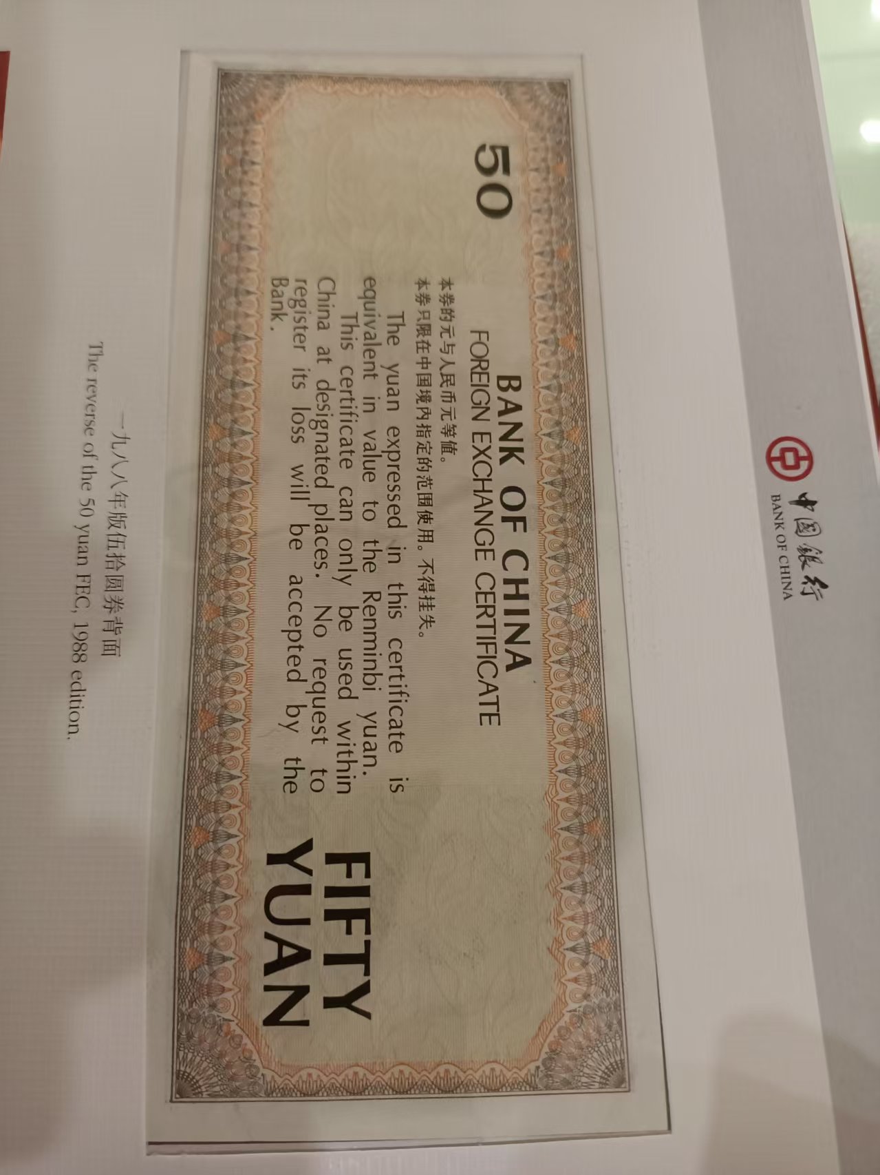 中国银行外汇卷100元2张50元2张10元5元1元5角1角各1张